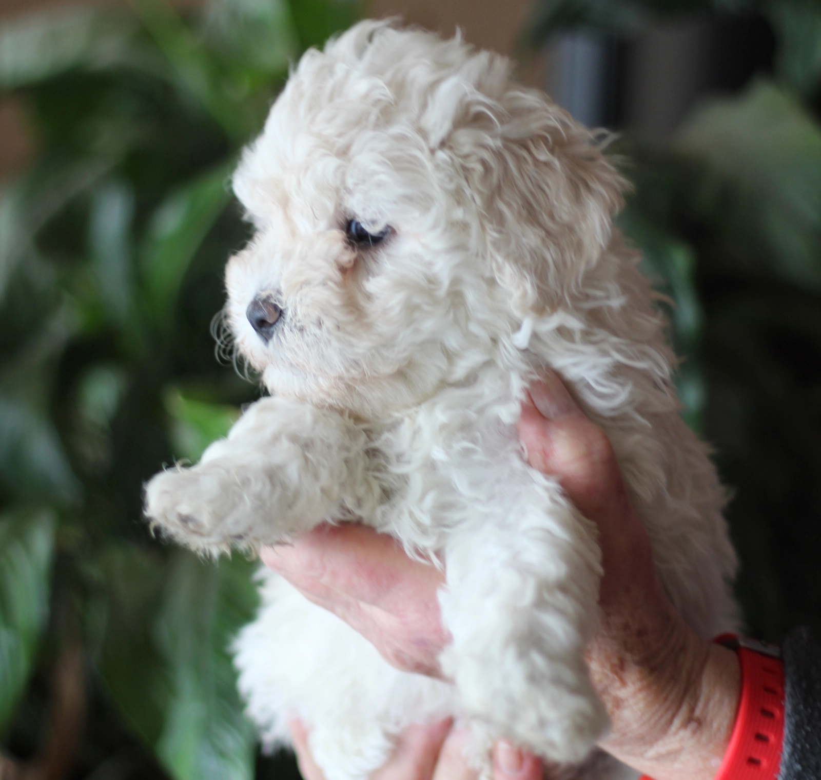 Festus is a charming white Puli pup, full of character and promise. He is one of just two boys in a litter of five, making him a special little fellow among his siblings. With his bright, expressive eyes and already developing corded coat, Festus is eager to find a loving home where his lively spirit and intelligence will shine. He would be an ideal friend for a family who appreciates the unique traits and energetic personality that the Puli breed brings into a home.